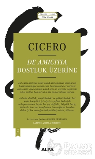 Roma’nın cumhuriyet rejiminden uzaklaşarak imparatorluk düzenine adım adım yaklaştığı İÖ 1. yüzyılda yaşayan ve bu çalkantılı siyasi ortamda Roma’nın soylu ideallerini ve cumhuriyet fikrini her fırsatta savunmaktan geri durmayan, hatta bu uğurda canını vermekten bile çekinmeyen büyük hatip, devlet adamı ve filozof Cicero’nun ömrünün son demlerinde, siyasetten elini eteğini çektiği dönemde kaleme aldığı felsefe konulu eserlerinin başında gelir De Amicitia (Dostluk Üzerine). Zihnini Yunan kültürüyle yoğurmuş, Platon’un Akademeia’sından Aristoteles’in Peripatos’una, hatta Epikurosçu ve Stoacı okullara değin Yunan düşüncesini satır satır özümsemiş bir filozof olan Cicero, bu eserinde Yunan ahlak felsefesinin en temel kavramlarından biri olan dostluğu Romalı bir bakış açısıyla ele almış ve bu kavramı Roma’nın siyaset arenasına taşıyarak fikir ve eylem yoldaşlığına dönüştürmüştür.