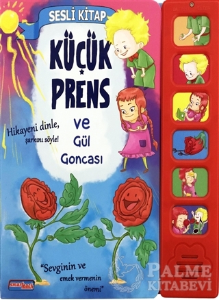 Serinin bu kitabında ‘’Sevginin ve Emek Vermenin Önemini’’ rengarenk çizimlerle , tiyatro ve sinema sanatçısı Begüm Akkaya tarafından seslendirilen naif bir hikayeyle ve Smart-teach yayınevi çocuk korosu tarafından seslendirilen özgün bir çocuk şarkısıyla; ‘’ Küçük Prens ve Gül Goncası ‘’ adlı sesli kitabımızda anlatmaya çalıştık.