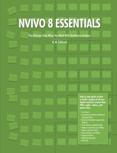 A user guide that helps you gain a better understanding of the new NVivo 8. Step-by-step instructions are combined with helpful comments to explain the terms used within qualitative analysis. NVivo 8 is a further development of Nvivo 7 and consistent with the Windows standard. NVivo 8 can handle all languages and alphabets supported by Windows. User interfaces in English, Spanish, and Mandarine. NVivo can import, code, and link Word files, PDFs, audio-, video- and picture files. Several categories of nodes can be created: Free nodes, Tree nodes, Cases, Relationships, and Matrices. The query methods are clearly explained and how to use the saved results. You can also create reports and graphical models and charts for presentations and team discussions. This book can be used as course literature or for self-teaching. A comprehensive yet clear list of contents, glossary, and index ensures the ease of finding the solution to problems that may occur.