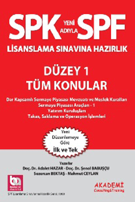 Ülkemizde finansal piyasaların gelişmesi ile birlikte bir çok alanda uluslararası düzenlemelere uyum konusunda adımlar atılmaya başlanılmıştır. Bu kapsamda, sermaye piyasası kurumlarında ve halka açık ortaklıklarda çalışanların mesleki yeterliliklerini, bilgi ve becerilerini tespit etmek amacıyla 2002 yılı Eylül ayında başlanılan Lisanslama Sınavları, Aralık 2014 itibariyle yeni bir düzenlemeye tabi tutulmuştur.Yeni düzenleme çerçevesinde 8 farklı türde lisans belirlenmiştir. "SPF Düzey 1” kapsamında yer alan tüm konularda sınav alt konu başlıklarına göre (Sermaye Piyasası Araçları -1, Yatırım Kuruluşları, Takas, Saklama ve Operasyon İşlemleri, Dar Kapsamlı Sermaye Piyasası Mevzuatı ve Meslek Kuralları) düzenlenen bu kitapta, konu anlatımı, örnek soru çözümleri ve deneme sınavı yer almaktadır.