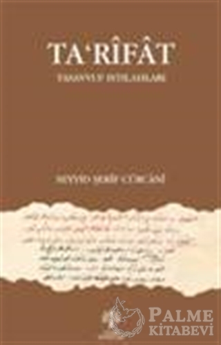 Seyyid Şerîf Cürcânî’nin en meşhûr eserlerinden biri olan Ta‘rîfât, müellifin kendi zamânında aklî ve naklî ilimlerde kullanılan ıstılahların târiflerini ihtivâ eder. Asırlardan beri ilim tâliplerinin başucu eserlerinden biri olan bu kitapta, ondan fazla ilme âid iki binden fazla ıstılāhın târîfi vardır. Kaynaklık husûsiyetini muhâfaza ettiğine inandığımız için yayınlamış olduğumuz elinizdeki bu eser, Ta‘rîfât’taki ıstılahlardan sâdece tasavvufa âid olan iki yüz elli civârındaki açıklamanın tercümesidir. Istılah lügatleri arasında mühim bir mevkii olduğunu düşündüğümüz Ta‘rîfât’ın, bu Türkçe neşrinin, tasavvuf lügatleri edebiyâtına da ciddî bir katkısı olacağını ümîd etmekteyiz..