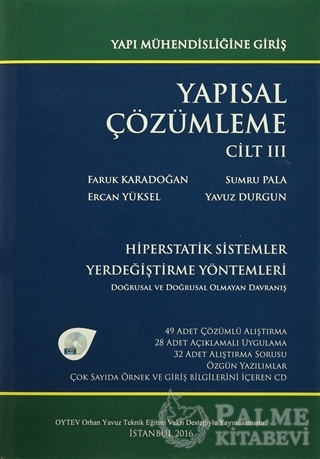 Yerdeğiştirme Yöntemi bilinmeyen sayılarını azaltmaya yönelik Açı Yöntemi, bunun gerektirdiği denklem takımını yazmadan çözümünü öngören Moment Dağıtma Yöntemi Cross Yöntemi, düğüm noktaları sadece dönen ve düğüm noktaları dönen ve ötelenen sistemler için ayrıntılı olarak işlenmekte ve bu bölüm çok sayıda Çözümlü Alıştırma ve Alıştırma Sorularıyla desteklenmektedir.