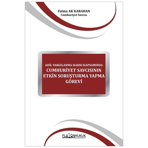 Adil Yargılanma Hakkı Kapsamında Cumhuriyet Savcısının Etkin Soruşturma Yapma Görevi - Fatma Ak Karahan Etkin bir soruşturma yürütmek, ceza muhakemesinde soruşturmayı yürütmekle görevli olan Cumhuriyet Savcısı bakımından görev niteliğindedir. Adil bir yargılamadan söz edilebilmesi için ilk olarak ceza muhakemesinin başlangıcı olan soruşturma aşaması adil bir biçimde yürütülmelidir. Bu aşamanın adil olması etkin bir soruşturma yürütülmesine bağlıdır. Etkin bir soruşturma yürütülmesi sorumluluğu Cumhuriyet Savcısına aittir. Cumhuriyet Savcısının yürüttüğü soruşturmanın etkinliği yargılamanın adilliği ve toplumun adalete olan güven duygusu bakımından son derece önemlidir. Soruşturma aşamasında bir bütün olarak adli kolluk, adli personel etkin soruşturma ve adil yargılanma hakkının gereklerine uygun hareket etmek ve bu anlamda katkı sağlamakla yükümlüdür. Bu kapsamda iki bölümden oluşan eserin; “Ceza Muhakemesinin Evreleri ve Cumhuriyet Savcısının Rolü” ismini taşıyan ilk bölümünde, soruşturma ile ilgili temel kavramlardan olan Cumhuriyet Savcısı, Ceza Muhakemesi Evreleri başlığı altında Soruşturma, Ara Muhakeme ve Kovuşturma Evreleri, Cumhuriyet Savcısı ve Soruşturma Aşaması başlığı altında Soruşturma Aşamasında Etkinlik, Soruşturma Aşamasının Başlaması; İhbar, Şikâyet, Suçun Doğrudan Doğruya Öğrenilmesi, Cumhuriyet Savcısı ve Soruşturma İşlemleri başlığı altında İddianame Hazırlanması, Kovuşturmaya Yer Olmadığına Dair Karar, Soruşturmaya Yer Olmadığı Kararı incelenmiştir. “Etkin Soruşturma” isimli ikinci bölümünde ise, Görev Olarak Etkin Soruşturma, Etkin Soruşturma Yapmanın Hukuki Niteliği ve Özellikleri, Türk Hukukunda Ceza Muhakemesi Kanunu Kapsamında Etkin Soruşturma, Soruşturmaya Yer Olmadığı Kararı ve Etkin Soruşturma, Kovuşturma Mecburiyeti İlkesi ve Etkin Soruşturma, Koruma Tedbirlerinin Etkin Soruşturma İle İlişkisi, Hukuka Aykırı Delillerin Etkin Soruşturma İle İlişkisi, Avrupa İnsan Hakları Mahkemesi kararları kapsamında detaylı bir şekilde etkin soruşturma ve özellikleri, Avrupa İnsan Hakları Sözleşmesi kapsamında Adil Yargılanma Hakkı incelenmiştir. Sonuç kısmında ise “Adil Yargılanma Hakkı bağlamında Cumhuriyet Savcısının Etkin Soruşturma Yapma Yükümlülüğü” 5271 sayılı Ceza Muhakemesi Kanunu, Ceza Muhakemesi ve Avrupa İnsan Hakları Mahkemesi içtihatları bağlamında etkin soruşturma, uygulamadaki sorunlar ile ilgili değerlendirilmelerde bulunulmuştur.