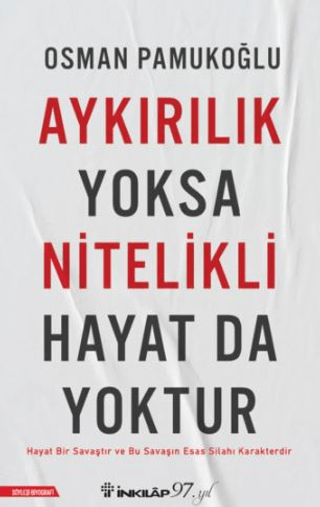 Gerze’de haylaz bir çocuk, Kuleli’de asi bir öğrenci, Hakkâri’de efsane bir komutan. Türkiye’nin 90’lı yıllarına damga vuran unutulmaz kahraman Osman Pamukoğlu, dünü, bugünü ve yarını anlatıyor. Pamukoğlu, henüz küçük bir çocukken şekillenmeye başlayan karakterini bir örnek niteliğinde okura sunarken öğrencilik yıllarının yanı sıra askeri ve siyasi hayatının bilinmeyenlerini de satırlarla buluşturuyor. Ve satır aralarında çok sayıda “O kadar da olmaz!” denilecek yaşanmış olay yer alıyor… Farklı yaş, eğitim ve sosyal statüdeki sekiz kişilik bir heyet tarafından hazırlanan sorular, Efsane Komutan’ın 70’i aşkın yılını bugüne taşımanın yanında yaşama dair ortaya çıkardığı felsefi cevaplarla yol gösterici bir haritaya dönüşüyor. Aykırılık Yoksa Nitelikli Hayat da Yoktur, sarsılmaz bir karakterin doğuşunu tarihe asla silinmeyecek bir not olarak düşüyor.
