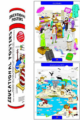 Gerek İngilizce derslerinde gerek sınıf materyali olarak okullarda, gerekse öğrenciler tarafından kişisel olarak evlerde kullanabilecek 14 adet 50 cm x 70 cm ölçüsünde posterden oluşmaktadır. Aşağıdaki konu başlıkları altındaki kelimeler seçilerek bir kompozisyon dâhilinde resimlenmiştir. Böylece posterler tekdüzelikten uzak, öğrencinin algılamasını kolaylaştırıcı biçimde tasarlanmıştır. ANIMALS & PETS • JOBS • CLOTHES • CLASS MATERIALS • FAMILY • COLOURS, SHAPES, HOROSCOPES • BODY HOUSE • BATHROOM AND BEDROOM • SEASONS AND WEATHER • KITCHEN • VEGETABLES – FRUITS • TRANSPORT • COMMON OPPOSITES 9,5 cm çapında, 53 cm uzunluğundaki silindirik kutusunda kolay taşınabilir posterlerin, selefon ile kaplanarak dayanıklılığı artırılmıştır.