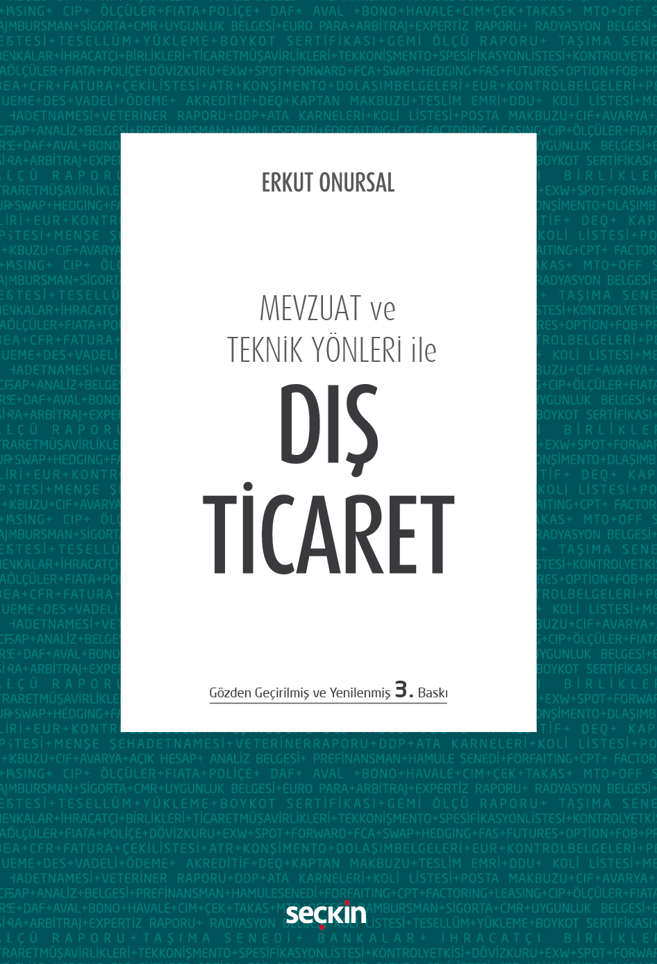 Kitap, gözden geçirilmiş ve yenilenmiş 3. Baskısını yapmıştır. Dış ticaret işlemlerinin yürütülmesinde uygulamacıların karşılaşılabileceği sorunların önemli ölçüde giderilmesini teminen ulusal ve uluslararası mevzuata göre hazırlanan bu kitabın konusunu: satış sözleşmeleri, teslim şekilleri, ödeme yöntemleri, alternatif finansman teknikleri, finansman belgeleri, döviz piyasası işlemleri, taşımacılık kuralları ve nakliyat sigortaları oluşturmaktadır.