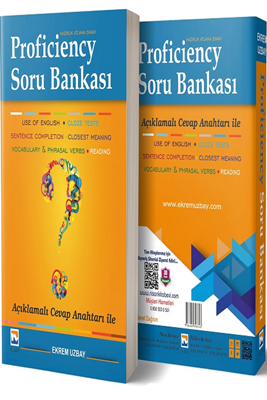 Bu kitap, üniversitelerin hazırlık atlama sınavları için yazmış olduğum Proficiency kitabımın soru bankası kitabıdır. Proficiency kitabımdaki testlerin cevap anahtarları klasik cevap anahtarlarıdır. Hâlbuki bu kitapta, proficiency sınavlarında en çok sorulan soru tipleri ve bu soru tiplerine ait soruların açıklamalı cevap anahtarları bulunmaktadır. Öğrenci, proficiency kitabımı çalıştıktan sonra, bu kitaptaki soruları çözme imkânı bulacak ve daha da önemlisi, bu soruların nasıl çözülmesi gerektiğini öğrenecektir.