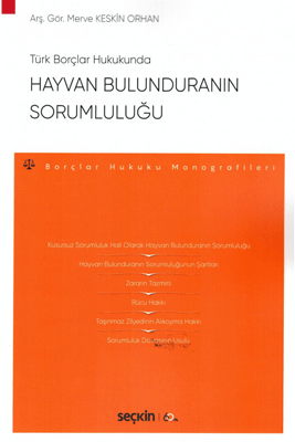 Türk Borçlar Hukukunda Hayvan Bulunduranın Sorumluluğu isimli kitap kapsamında; hayvan kavramına nelerin dahil olduğu, hayvan bulunduran olarak kimlerin sorumlu tutulabileceği, hayvanın hangi davranışları sonucu ortaya çıkan zararlarda hayvan bulunduranın tazmin yükümlülüğü bulunduğu, sorumluluğu doğuracak olan hayvanın davranışı ve zarar arasında hangi hallerde illiyet bağı bulunduğu, tazmin edilecek zararlar kapsamına nelerin girdiği, rücu hakkı, taşınmaz zilyedinin hayvanı alıkoyma hakkı, 818 Sayılı Borçlar Kanunu döneminde açıkça düzenlenen fakat mevcut TBK düzenlemesinde yer almayan bir ifade olan hayvanı öldürmenin haklı görülüp görülemeyeceği meselesi ve son olarak sorumluluk davasında usul konusu, doktrindeki görüşler ve Yargıtay kararları çerçevesinde açıklığa kavuşturulmaya çalışılmıştır.