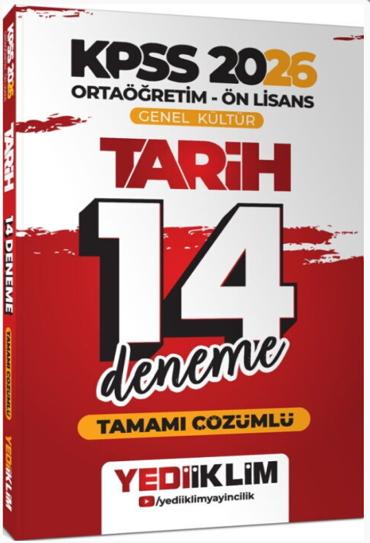 Yediiklim Yayınları 2026 KPSS Ortaöğretim Ön Lisans Genel Kültür Tarih Tamamı Çözümlü 14 Deneme