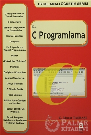 - C’ye yeni başlayanlar için temel kavramlar, operatörler, değişkenler, sabitler, temel I/O fonksiyonları, kontrol deyimleri, döngüler. - Fonksiyonlar ve Yapısal Programlama Teknikleri - Diziler - Göstericiler ve Stringler Onlarca örnek program, şekil ve basit anlatımla artık zor değil. - Dosya işlemleri Kendi veritabanı programlarınızı yazabilirsiniz. - Yapılar (Structures) ile kendi tiplerinizi tanımlayabilirsiniz. - C’de Grafik Kendi arabirimlerinizi oluşturabilir, basit konsol oyunları yazabilirsiniz! - Önişlemci Komutları - Örnek Proje Soruları Tetris oyunu, tavla oyunu, personel veritabanı programı, bilgisayar destekli eğitim (CAI) programı ve diğerleri...