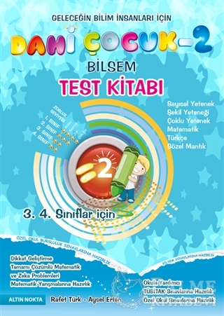 Ülkemizde üstün yetenekli çocuklara ve gençlere yeteneklerini geliştirme imkânları sunmak örgün eğitimle çok zordur ve bu alanda büyük boşluk oluşmuştur. Bu boşluğu doldurmak amacıyla Bilim Sanat Merkezleri (BİLSEM) kurulmuştur. BİLSEM, üstün zekâlı ve özel yetenekli öğrencilerin (resim, müzik ve genel zihinsel yetenek) örgün eğitim kurumlarındaki eğitimlerini aksatmayacak şekilde bireysel yeteneklerinin farkında olmalarına, kapasitelerini geliştirerek en üst düzeyde kullanmalarına ve onların erken dönem bilim ve sanat insanları olarak yetişmelerine olanak sağlayan özel eğitim kurumlarıdır. BİLSEM, Milli Eğitim Bakanlığı Ölçme, Değerlendirme ve Sınav Hizmetleri Genel Müdürlüğü tarafından yapılan merkezî sınavla öğrenci almaktadır. Bu sınav üç ana bölümden oluşmaktadır: Türkçe, Matematik ve Genel Yetenek. BİLSEM sınavlarına öğrenci hazırlayan öğretmenler ve sınavlara girecek öğrenciler için hazırladığımız kitabımız yedi bölümdür. Şekil yeteneği, sayısal yetenek, çoklu yetenek, matematik, Türkçe, sözel yetenek ve çözümler. Çalışma soruları ile öğrencinin konuyu öğrenmesi, testlerle öğrendiklerini pekiştirmesi amaçlanmıştır. Kitabımızdaki tüm soruların çözümleri kitabın son bölümüne konulmuştur. Her bölümde öğrencinin farklı türde sorularla karşılaşması için yaşlarına uygun olarak zengin ve doyurucu sorulara yer verilmiştir. Öğrencilerimizin yaş ve ihtiyaç özellikleri dikkate alınarak tipik standart testler yerine resim, şekil ve sembollerle desteklenmiş görsel sorular hazırlanmıştır. Geleceğin bilim insanlarının hoşuna gideceğini düşündüğümüz kitabımızın faydalı olması temennisiyle...