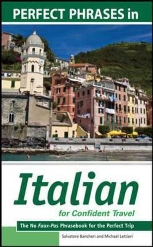 More than your average phrasebook, this portable title shows you how to be a well-mannered visitor and speak the local language in the correct context Any phrasebook can give you a line listing of essential phrases. But if you use a phrase or term without knowing the correct way to use it, you can find yourself in an embarrassing situation. Perfect Phrases in Italian for Confident Travel addresses this problem expertly. Yes, you get the basics but you get a lot more background and guidance on how to use these words and phrases correctly without making a faux pas. With the confidence that you are using a phrase correctly, you will enjoy a smoother adventure in Italy.