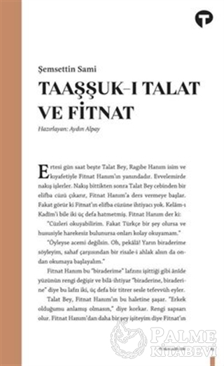 Görücü usulü evliliğin yol açtığı trajik olayları konu edinen romanda Talat, ilk görüşte âşık olduğu Fitnat’ı görebilmek için kadın kılığında İstanbul sokaklarında dolaşır. Kadının kamusal alanda karşılaştığı