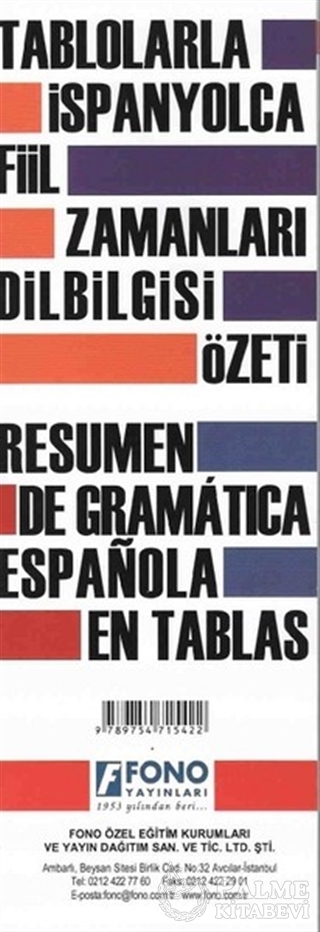 İspanyolca öğrenmeye yeni başlayanlar için hazırlanmıştır. İspanyolca dilbilgisi özetini örnek cümlelerle anlatmıştır. Katlanır kortonet şeklinde olması her an elinizin altında olmasına kolaylık sağlamıştır.