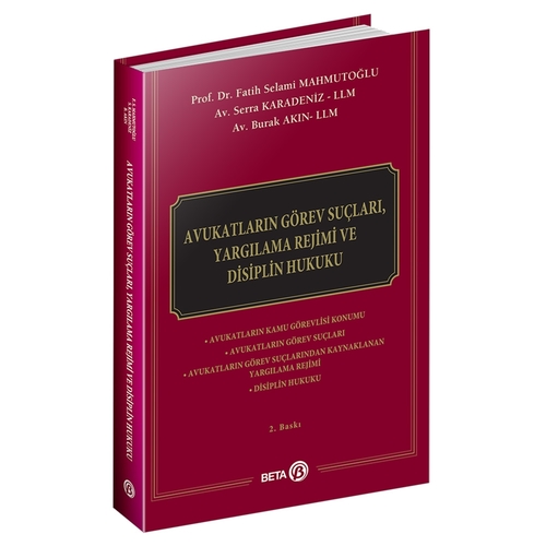 * Avukatların Kamu Görevlisi Konumu -Bu Konumun Neden Olduğu Sorunlar- Bu Sıfatla İşlenebilecek Suçlar * Ceza Hukuku Mevzuatı Kapsamında Avukatların Konumu * Kamu Görevlisi Sıfatıyla İşlenebilecek Suçlar * Adliyeye Karşı Suçlar * Diğer Suçlar * Avukatların Görev Suçları ile İlgili Yargılama Rejimi * Avukatlar Bakımından Özellik Arzeden Koruma Tedbirleri * Telekomünikasyon Yoluyla Yapılan İletişimin Denetlenmesi * Disiplin Hukuku * Disiplin Hukuku Kavramı * Suçların ve Disiplin yaptırımını Gerektiren Fiillerin Karşılaştırılması * Avukatlara Disiplin Yaptırımının Uygulanacağı Haller * Disiplin Yaptırımı Gerektiren Fiillerin Soruşturulması ve Kovuşturulması Usulü * Disiplin Yaptırımları * Ceza Yargılaması Sürecinin Disiplin Hukukuna Etkisi