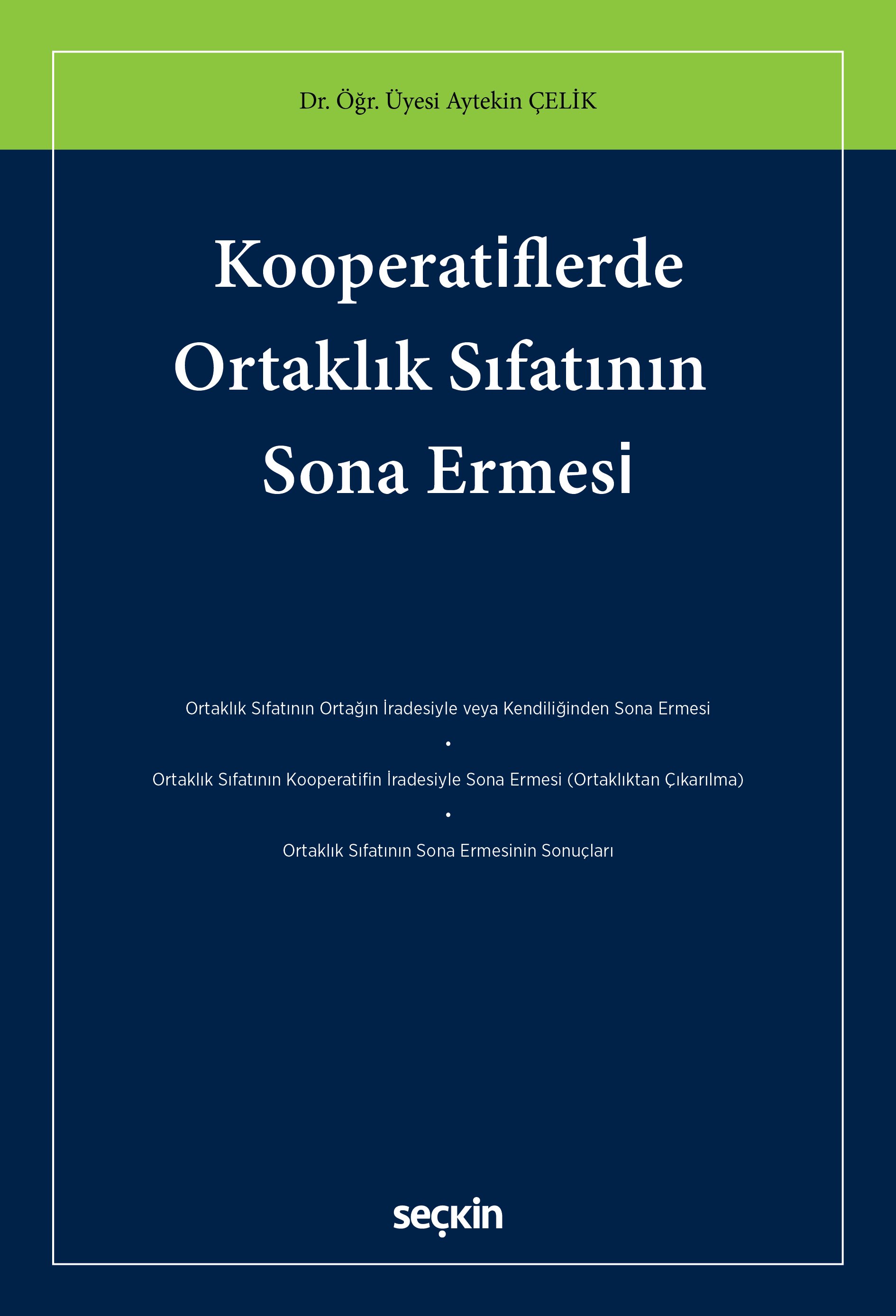 Kooperatifler her ne kadar bir ticaret şirketi olarak kabul edilse de 1163 sayılı Kooperatifler Kanunu'nda kooperatiflere ilişkin pek çok konuda, diğer ticaret şirketlerinden farklı düzenlemelere yer verilmiştir. Ortaklık sıfatının sona ermesi konusu da ticaret şirketleriyle kooperatifleri önemli ölçüde farklılaştırmaktadır. Ortaklık sıfatının sona ermesi, kooperatiflere ilişkin en fazla sorun yaşanan konulardan birisidir. Bu konuda hem ortaklık sıfatını sona erdiren sebepler hem de ortaklık sıfatının sona ermesi halinde gündeme gelen ayrılma payına ilişkin uygulamada çok sayıda ihtilafla karşılaşılmaktadır. 1163 sayılı Kooperatifler Kanunu'nda ortaklık sıfatının sona ermesi ve sona ermenin sonuçlarına ilişkin düzenlemelere oldukça dağınık bir şekilde yer verilmiştir. Ayrıca söz konusu düzenlemeler, bu konuda ortaya çıkan sorunların büyük bir kısmının çözümünde yetersiz kalmaktadır. Bu sebeple kooperatiflere ilişkin uyuşmazlıkların çözümünde yargı kararları önemli bir etkiye sahip olmaktadır. Kitabın ilk bölümünde kooperatif kavramı, kooperatiflerin temel özellikleri ve kooperatiflerin hukuki niteliği konusunda genel bilgilere yer verilmiştir. İkinci bölümünde ise ortaklık sıfatının ortağın iradesiyle veya kendiliğinden sona ermesi konuları incelenmiştir. Üçüncü bölümde ortaklık sıfatının kooperatifin iradesiyle sona ermesi, yani ortaklıktan çıkarılma inceleme konusu yapılmıştır. Dördüncü ve son bölümde ise ortaklık sıfatının sona ermesinin sonuçları üzerinde durulmuştur.